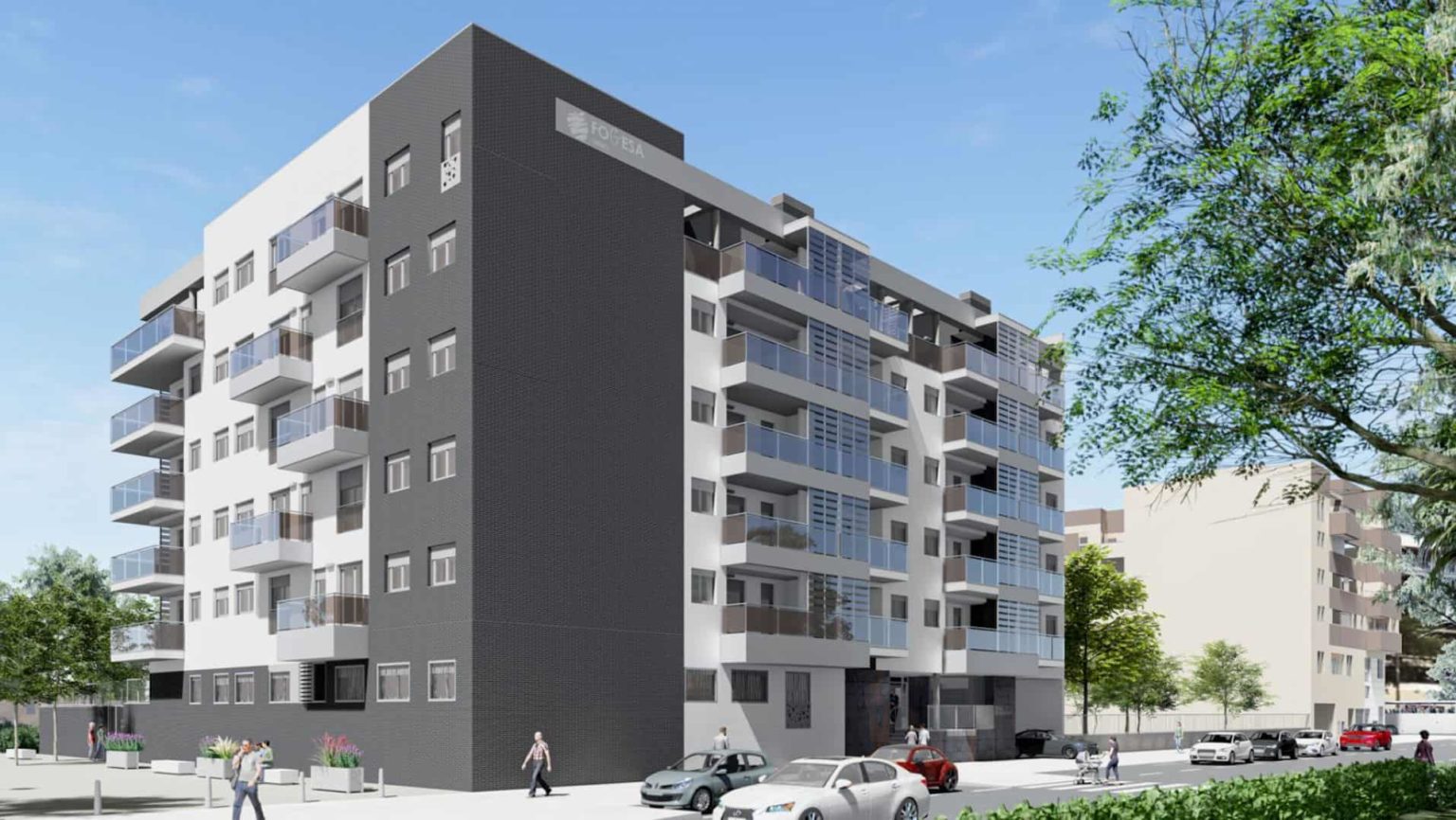 39 Viviendas en altura con aerotermia, zonas comunes como piscina, gastroteca, sala audiovisual, outdoor gym y un espacio para dejar la bicicleta, asimismo, las viviendas son eficientes energéticamente.