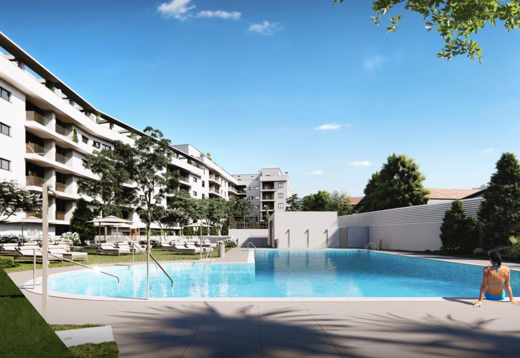 con aislamiento interior para mayor confort acústico y térmico. La carpintería exterior de la vivienda se ha previsto en PVC. La producción de agua caliente sanitaria se realizará mediante termo eléctrico o aerotermia. La climatización de la vivienda se compone de una red de conductos instalada en falso techo. Zonas verdes, piscina y pista de pádel