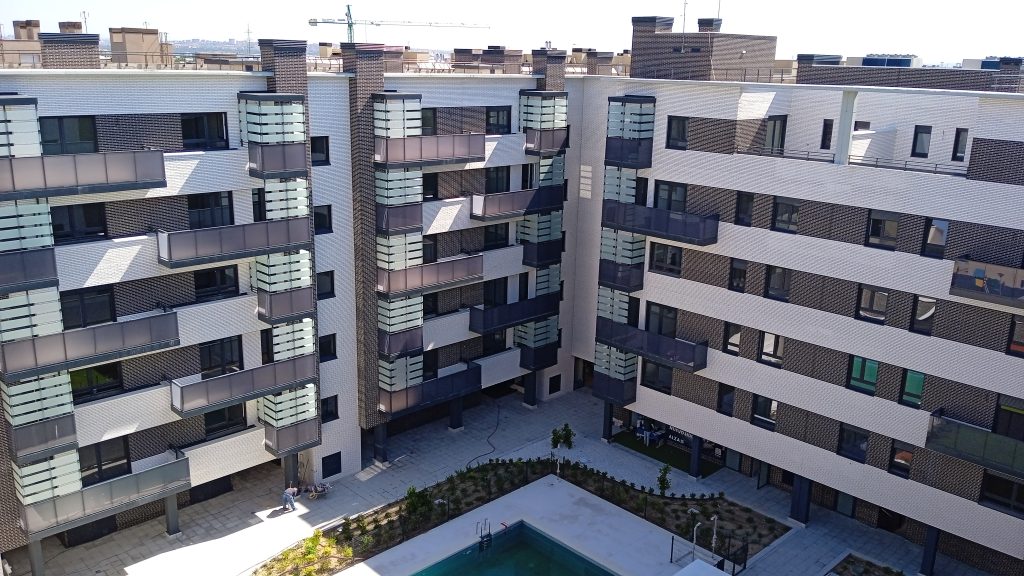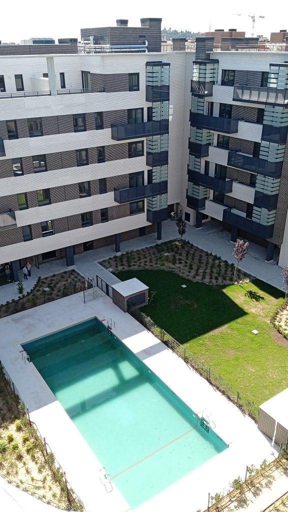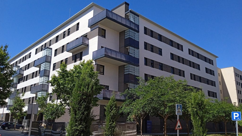 78 viviendas plurifamiliares con zonas comunes ajardinadas con juegos infantiles, piscina con depuración con cloración salina y sala multiusos. Edificio con estructura de hormigón, fachada en ladrillo visto con algún detalle en monocapa. Producción de calefacción, refrigeración y agua caliente sanitaria mediante sistema de AEROTERMIA con combinación de placas solares. Suelo radiante-refrescante. Viviendas con Calificación energética A.